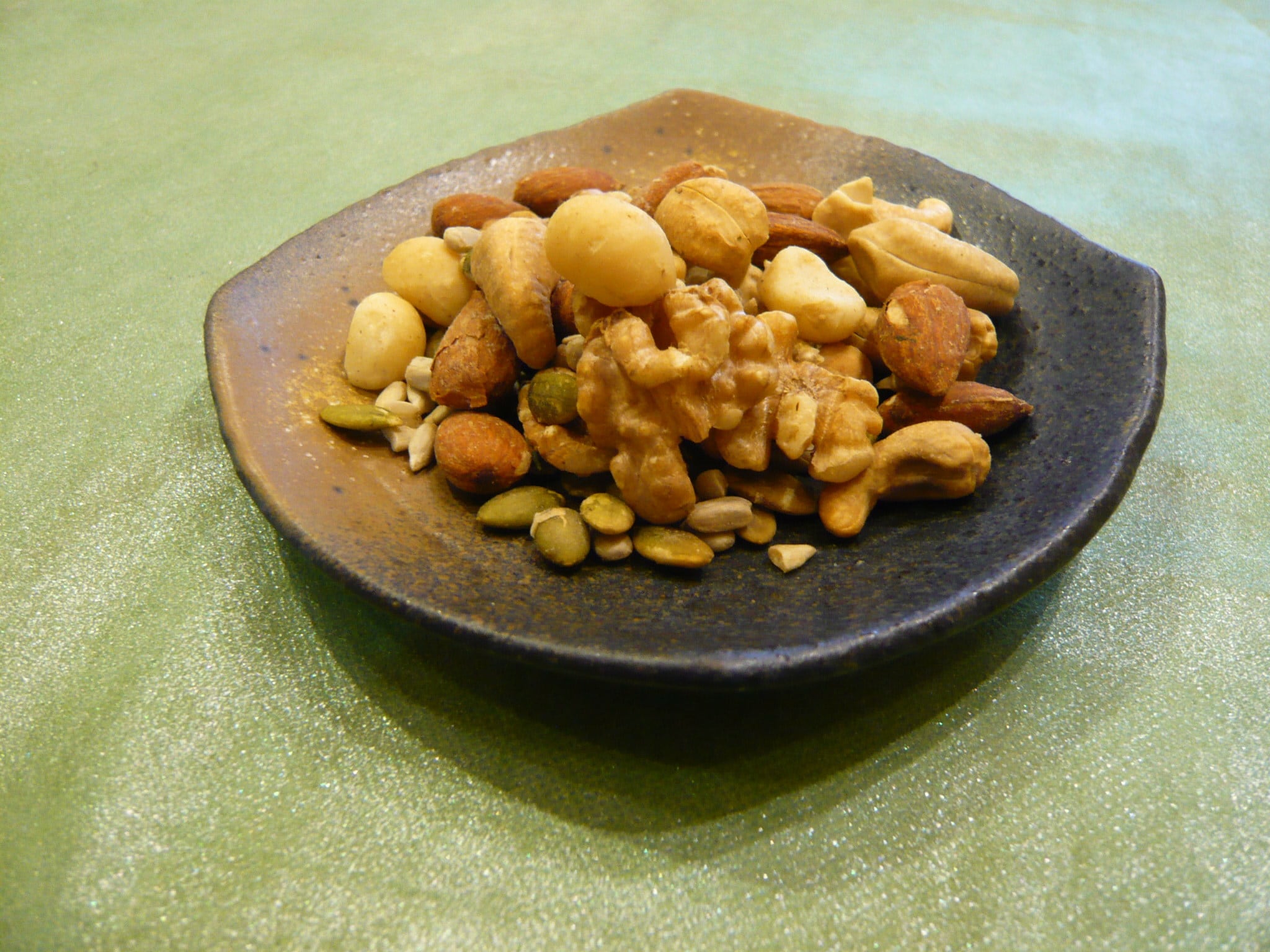 原材料名 : カシューナッツ(ブルキナファソ産orベナン産orカンボジア産)、くるみ(アメリカ産)、アーモンド(アメリカ産)、マカデミアナッツ(オーストラリア産)、かぼちゃの種(中国産)、ヒマワリの種(アメリカ産)、ピスタチオ(アメリカ産)、塩(長崎産)
